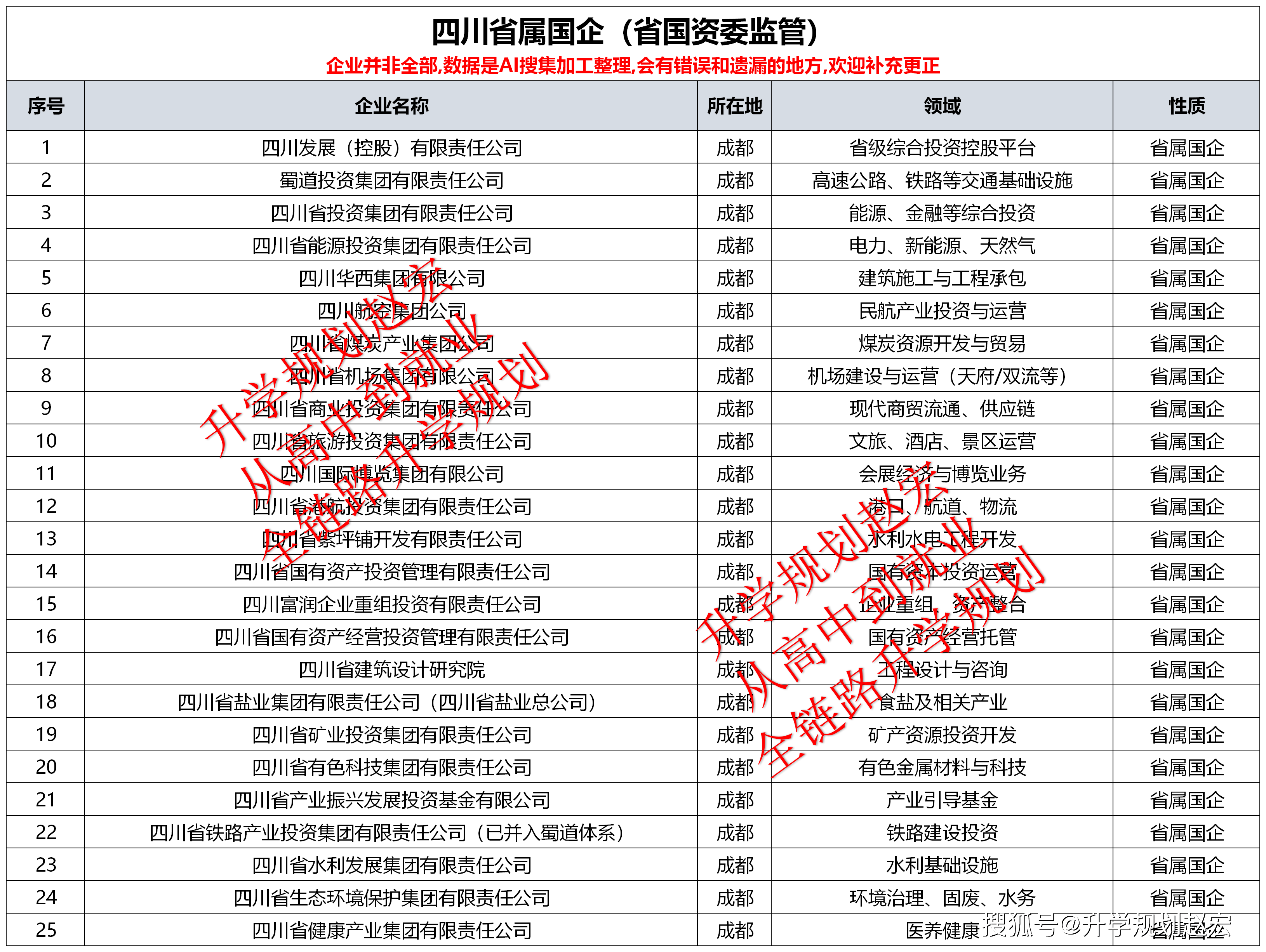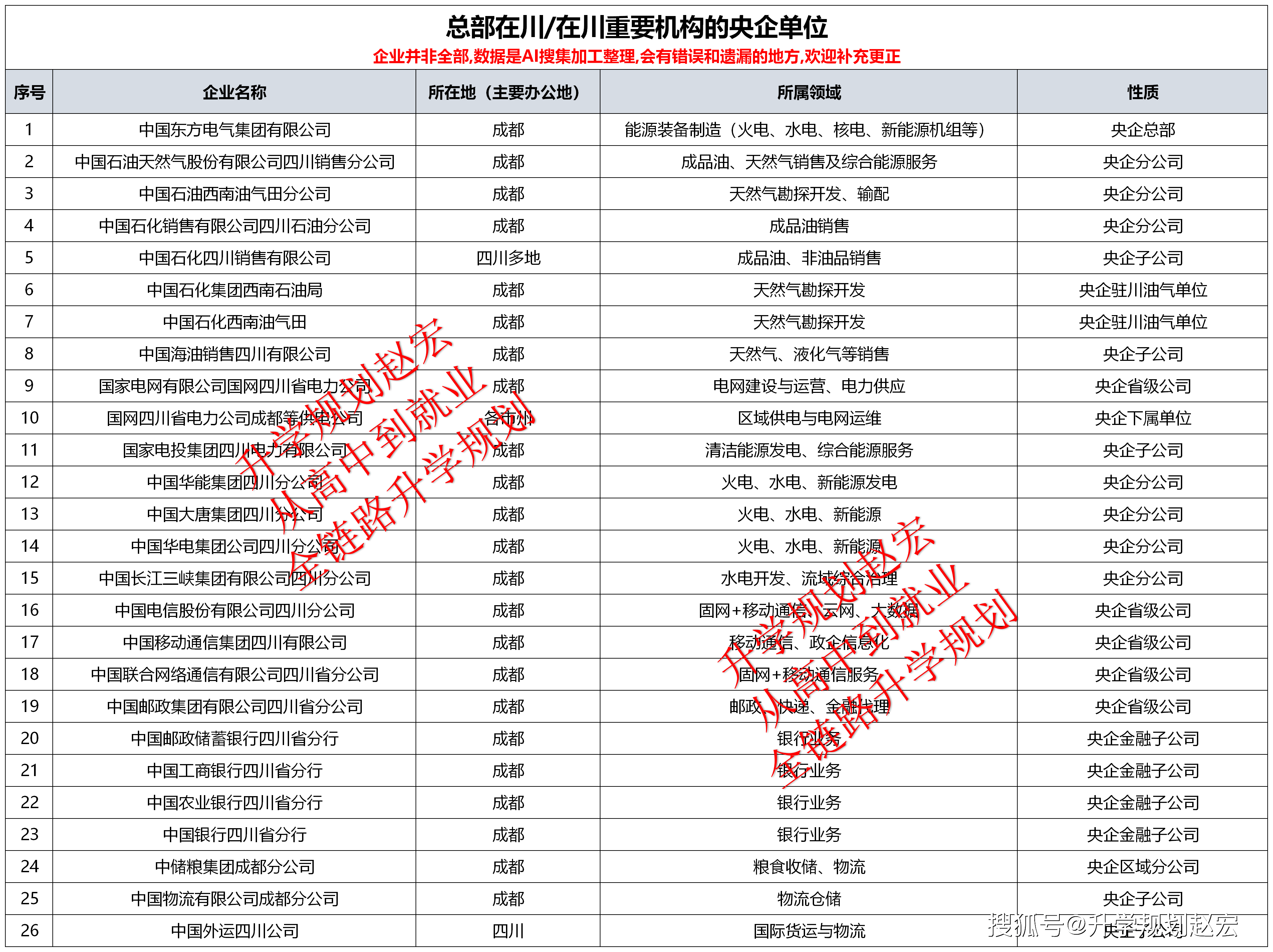 电力/能源标的目的对口企业有国网四川电力、四川能投、东方电气、西南油气田、中石油四川发卖、中石化西南油气分公司、水电五局/七局等。大标的目的都是往体系体例内和央国企去合作。
